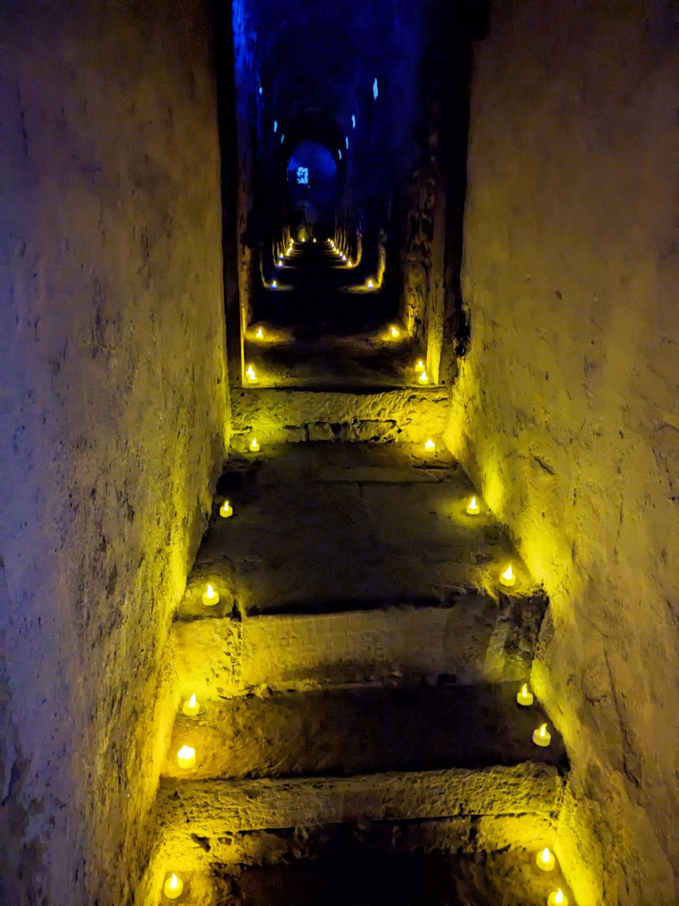 Hunderte LED-Lichter verzaubern die alten Gänge und Gewölbe des Fort Josef mit einer besonderen Stimmung. Sie machen die architektonische Schönheit der von kurfürstlichen Baumeistern geschaffenen unterirdischen Anlagen sichtbar.